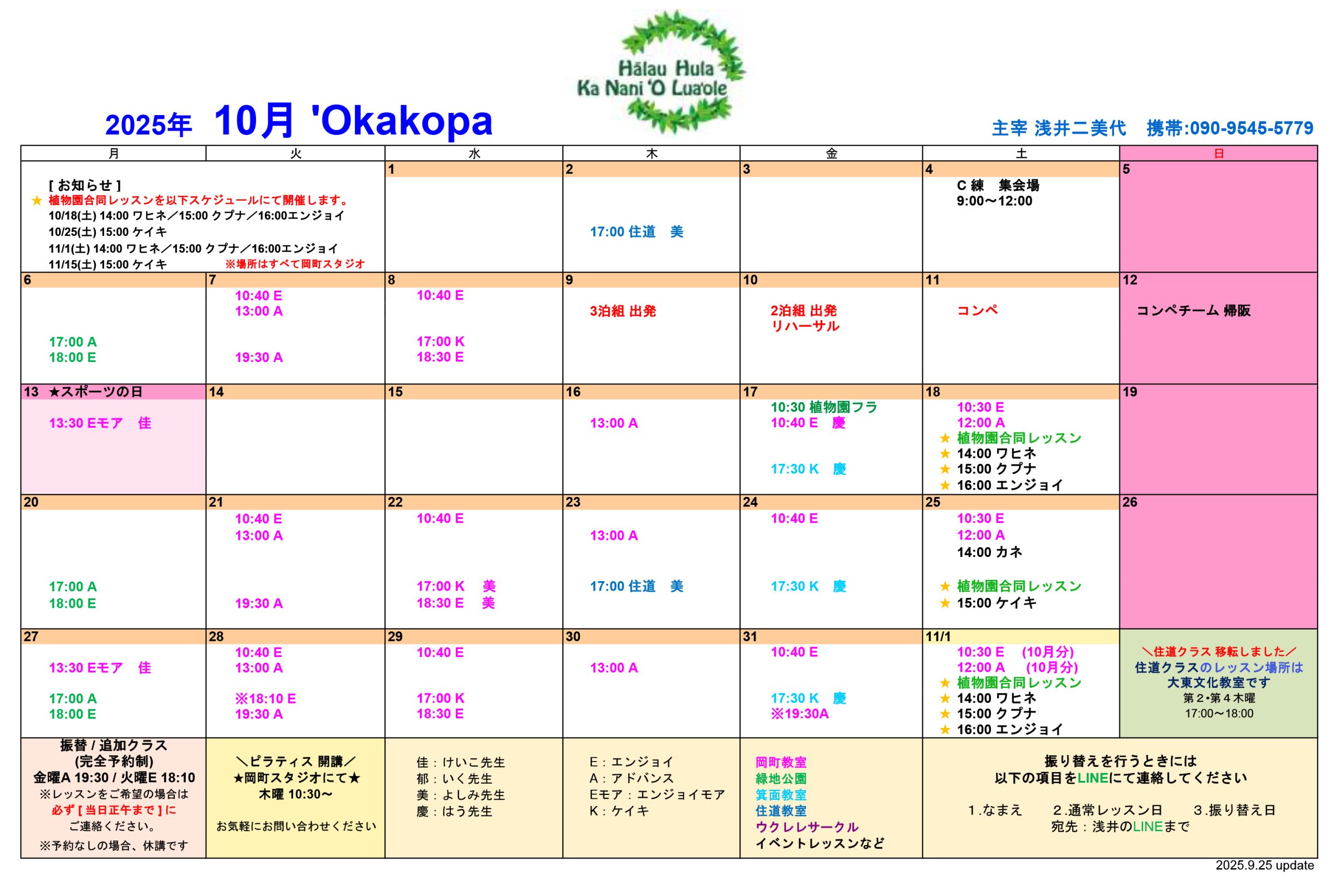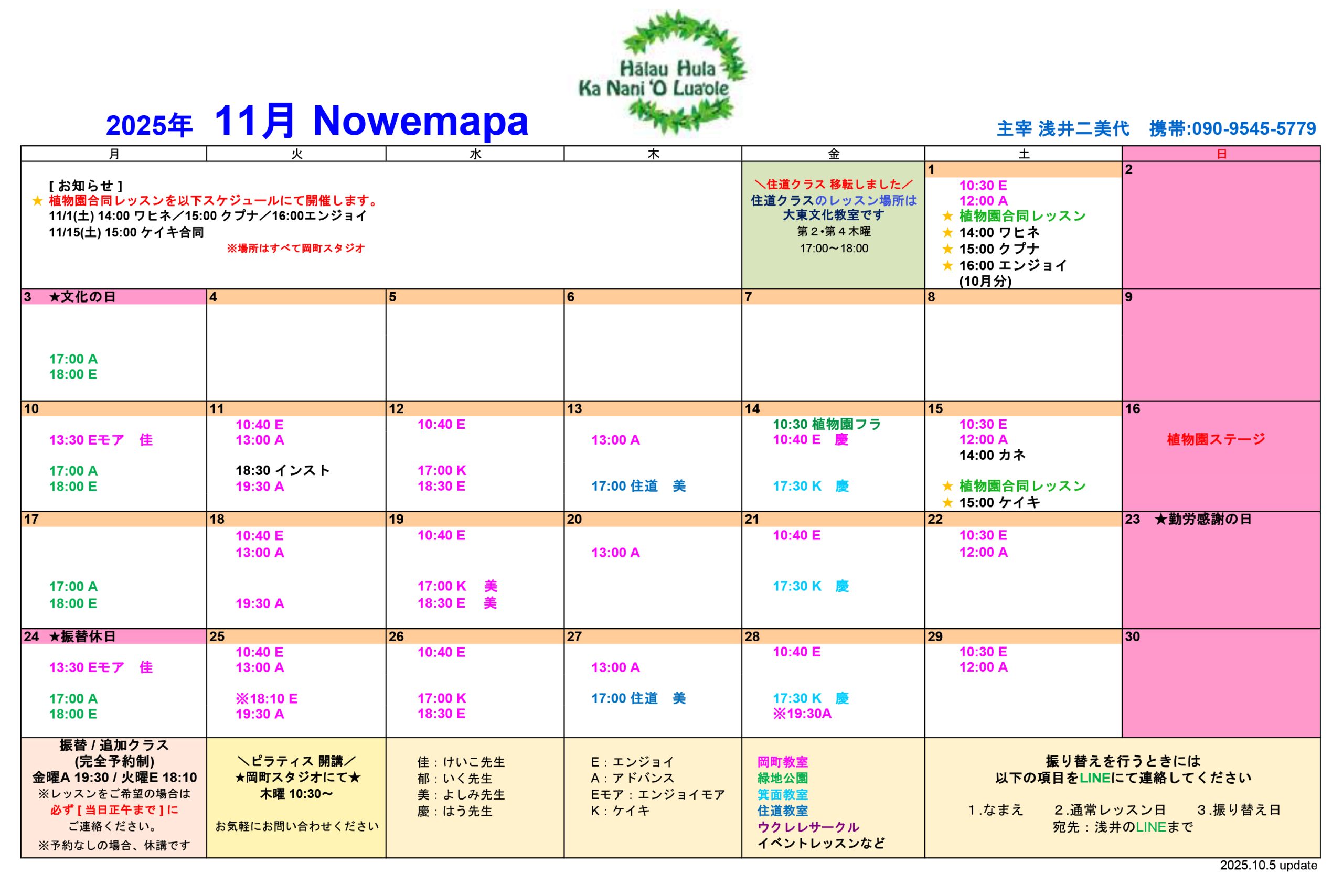 10〜11月中、植物園合同レッスンを以下のスケジュールで開催いたします。10月・11月スケジュールにも記載しておりますのでご確認ください。