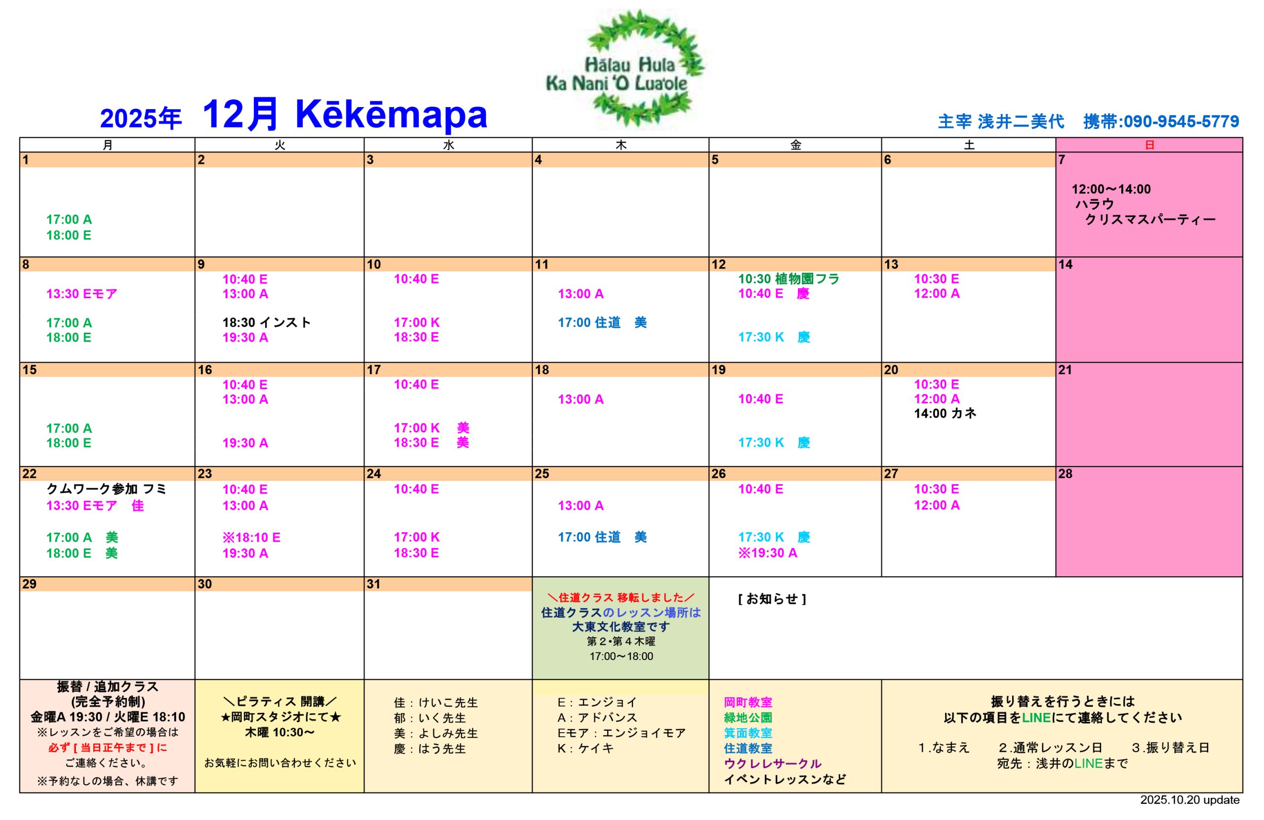 ★2025年8月より、月曜日エンジョイモアクラスのレッスン開始時間は13:30からとなっております。